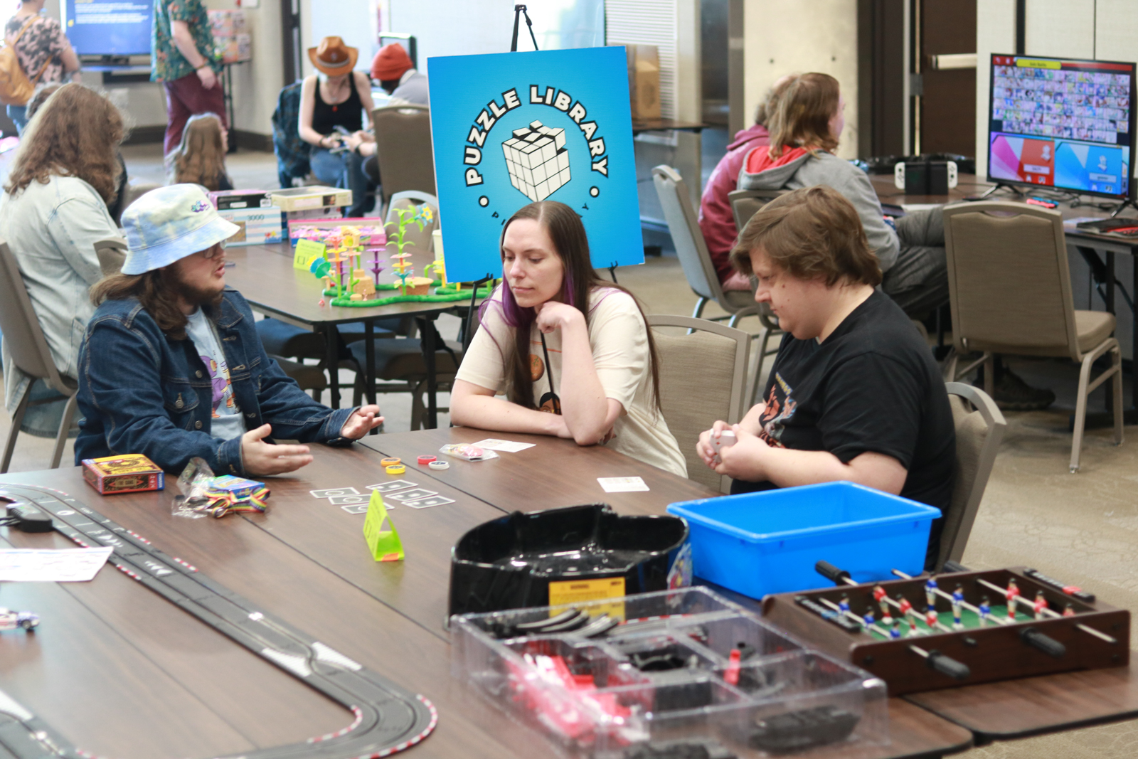 Hustle and bustle of the convention too much for now? Check out the calm room, lower lighting, quieter, puzzles, colouring, other restoring activities. (Photos from previous)